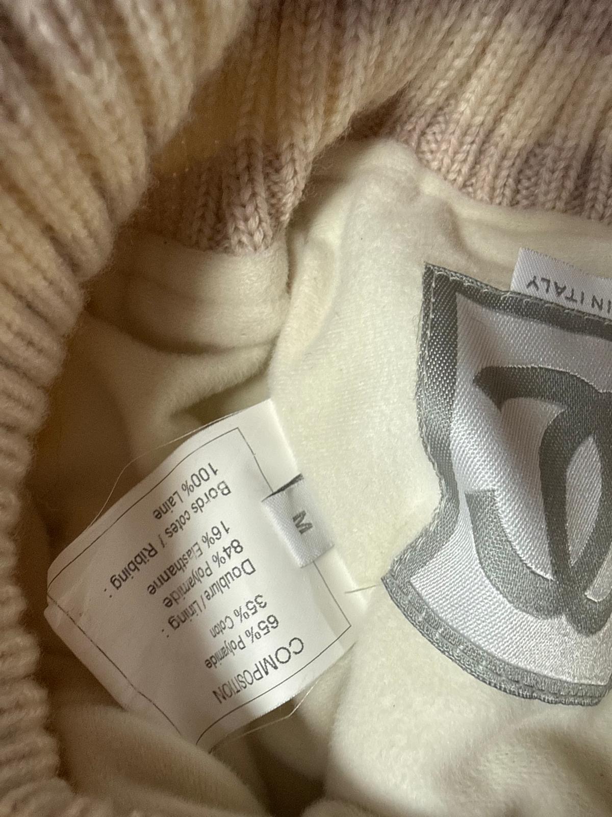Ce bonnet Chanel est une pièce maîtresse issue de la collection "Coco Neige", la ligne dédiée aux sports d'hiver qui allie performance technique et haute couture. Sa conception hybride associe une calotte en nylon satiné blanc déperlant à une large bordure en maille bicolore, offrant une protection optimale contre le froid tout en restant respirante.