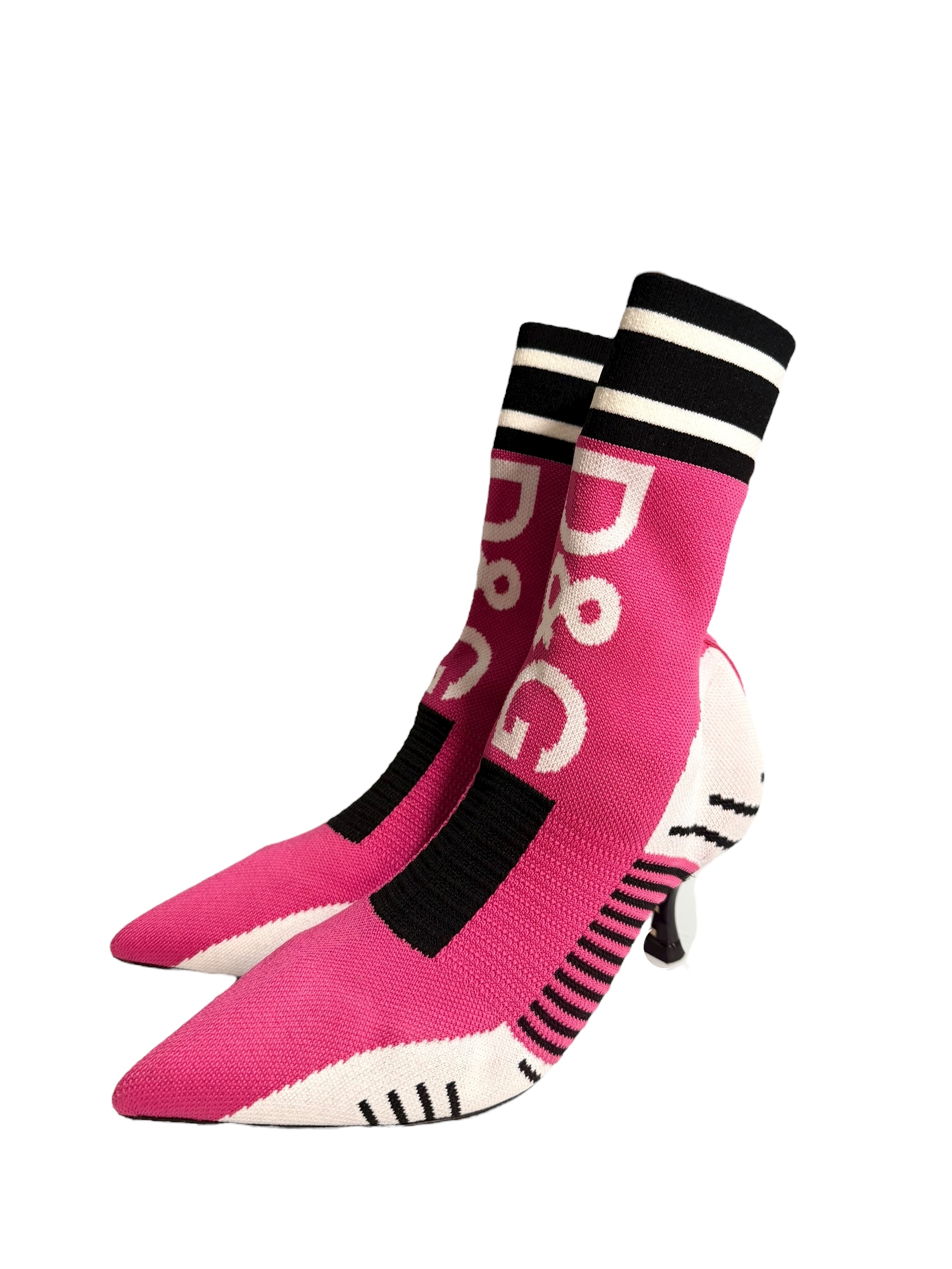 Ces bottines Dolce Gabbana sont une fusion audacieuse entre l'esthétique sportive et le glamour couture. Confectionnées dans une maille technique extensible de couleur fuchsia, elles épousent parfaitement la cheville pour un effet "seconde peau".