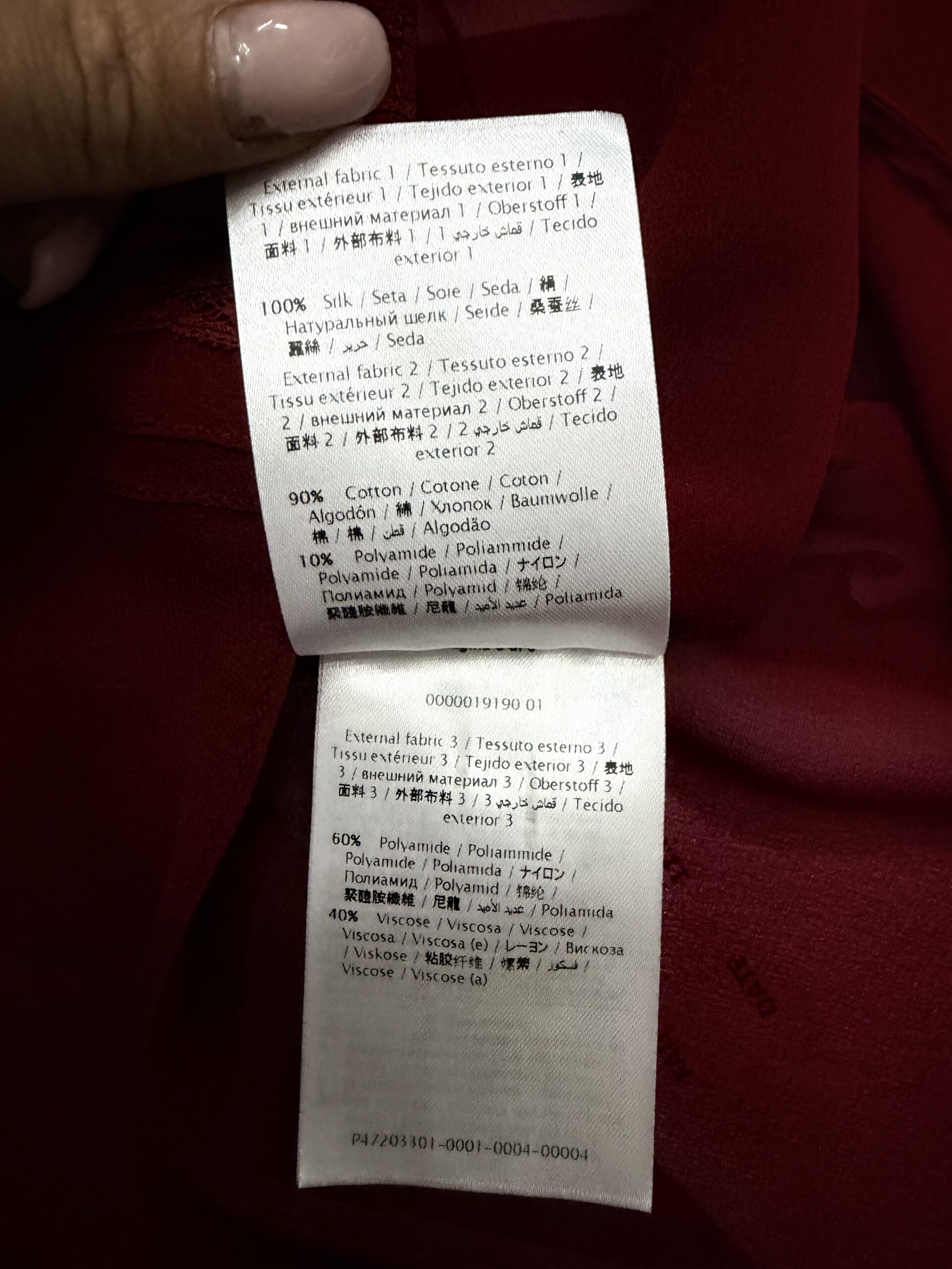 Ce chemisier Valentino est une pièce d'une élégance rare, illustrant la maîtrise de la Maison italienne pour le travail des matières vaporeuses. Confectionné dans une soie bordeaux profonde, il joue sur des jeux de transparence sophistiqués.