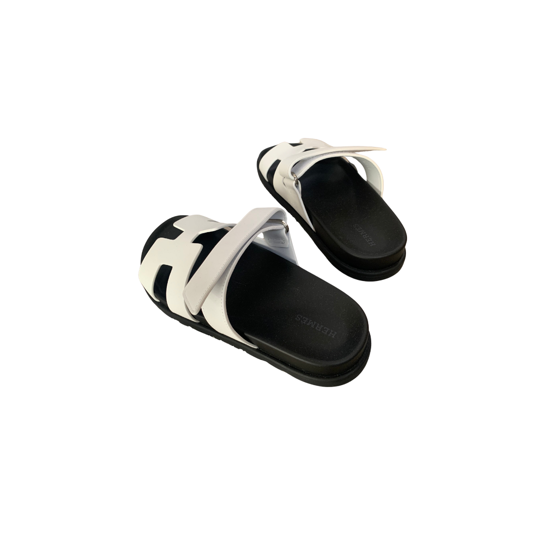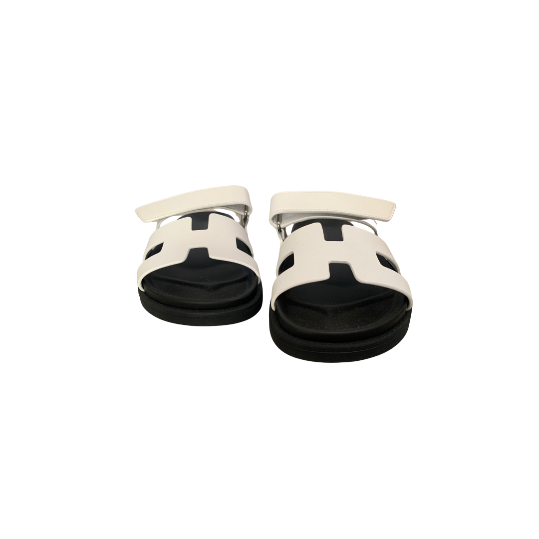 Découvrez les sandales Chypre Hermès blanches, un modèle emblématique de la célèbre maison de luxe française. Confectionnées en cuir lisse de haute qualité, ces sandales allient élégance, confort et durabilité. Leur design épuré et sophistiqué en fait une pièce incontournable du vestiaire estival.