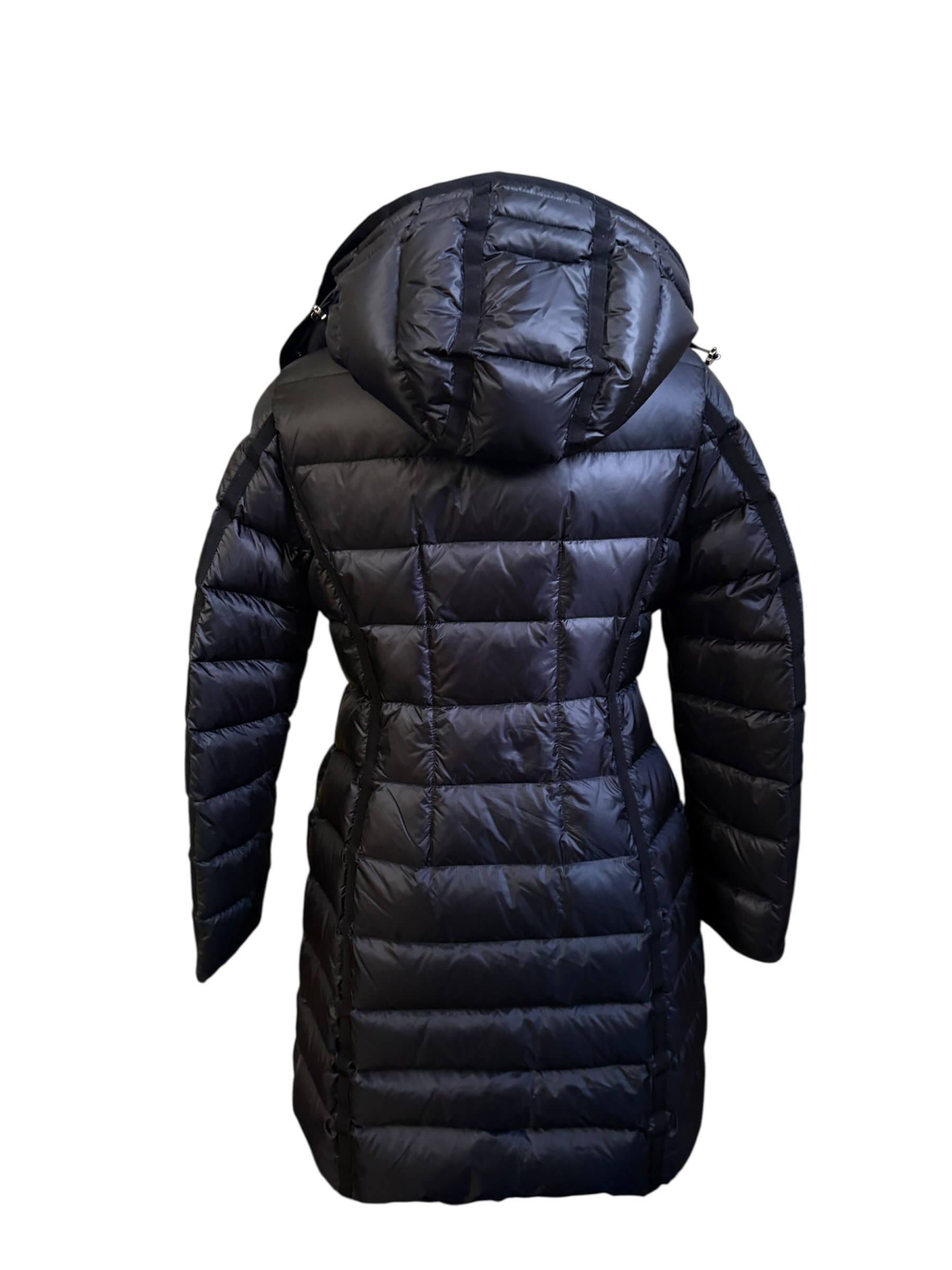 Cette doudoune Moncler, modèle Hermine est l'un des designs les plus prisés et reconnaissables de Moncler, conçu pour offrir une chaleur exceptionnelle sans sacrifier l'élégance de la silhouette. Ce manteau long se distingue par sa coupe ultra-féminine, cintrée à la taille grâce à des découpes verticales savamment placées qui structurent le buste.
