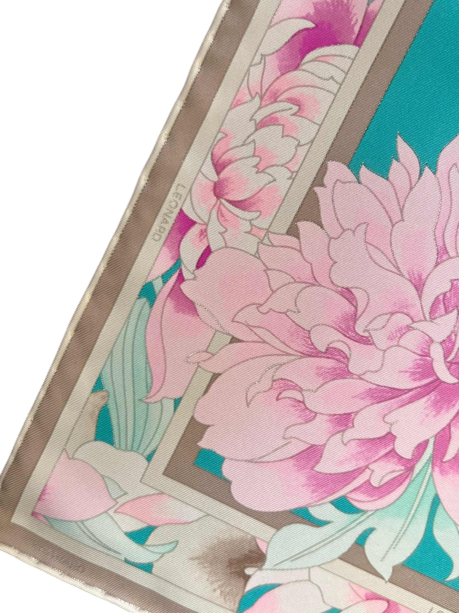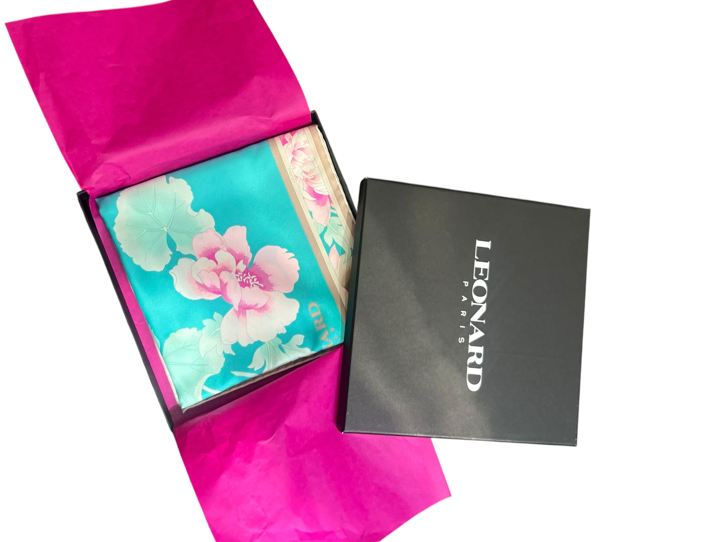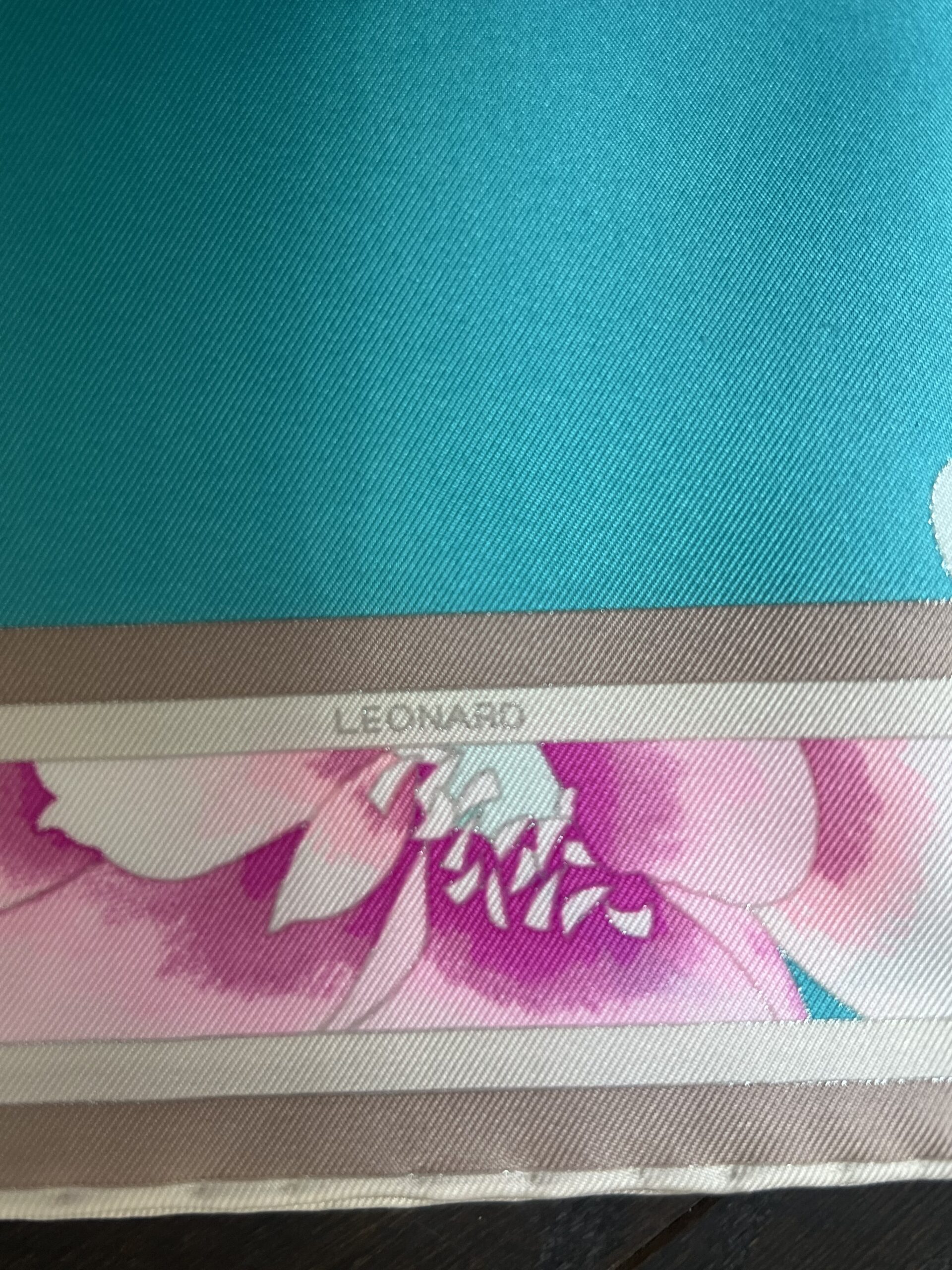 Une explosion de couleurs et de poésie signée Leonard Paris. Ce superbe foulard en twill de soie met en scène une majestueuse orchidée, fleur emblématique de la maison, sur un fond turquoise vibrant. Une véritable œuvre d'art à porter, qui apportera une touche de luxe et de gaieté à n'importe quelle tenue.