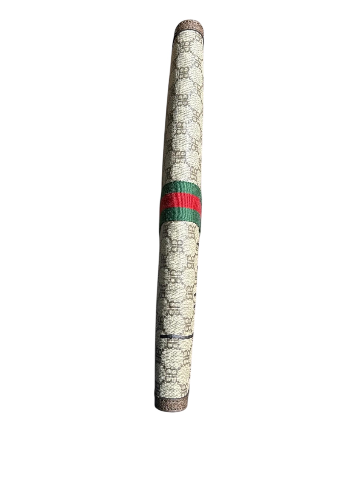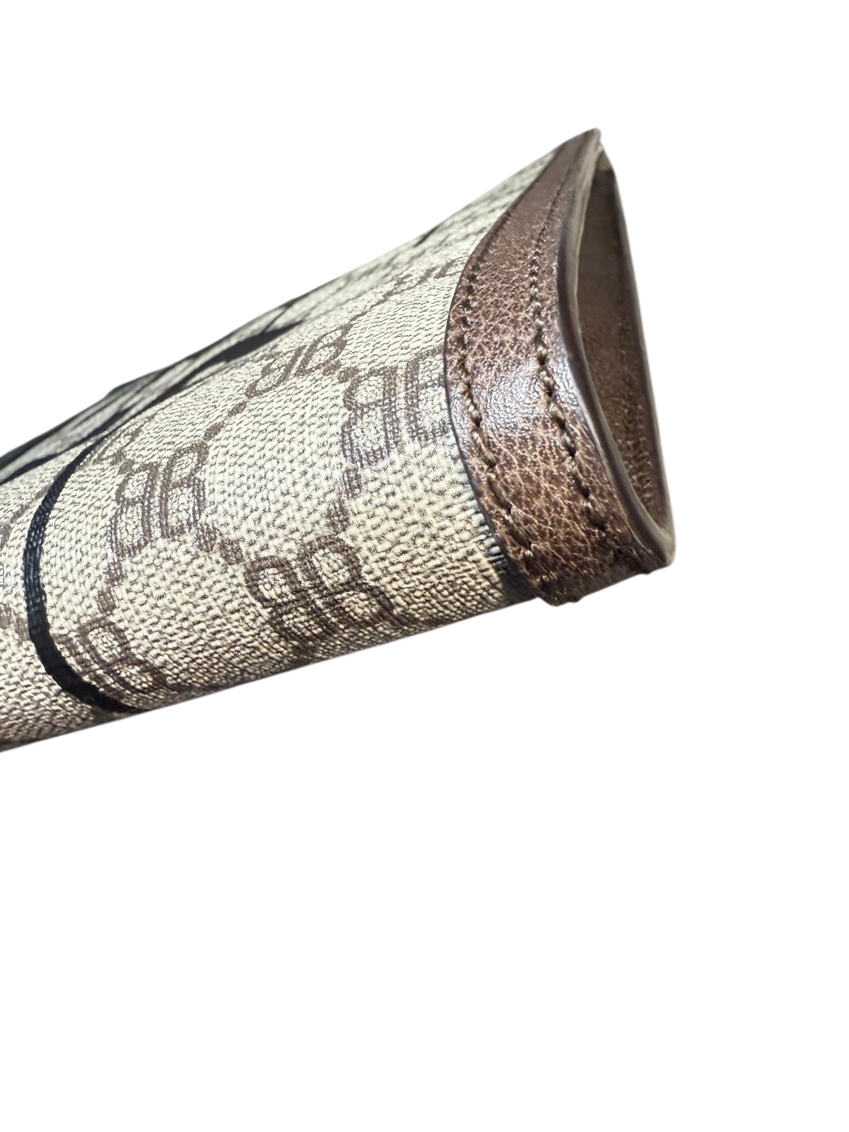 Cette pochette Balenciaga est une pièce emblématique de la collection "The Hacker Project", où Balenciaga détourne les codes de la maison Gucci avec ironie et audace. Elle arbore la toile enduite à motif BB Monogram (une réinterprétation du GG de Gucci par Balenciaga) et la célèbre bande Web verte et rouge.