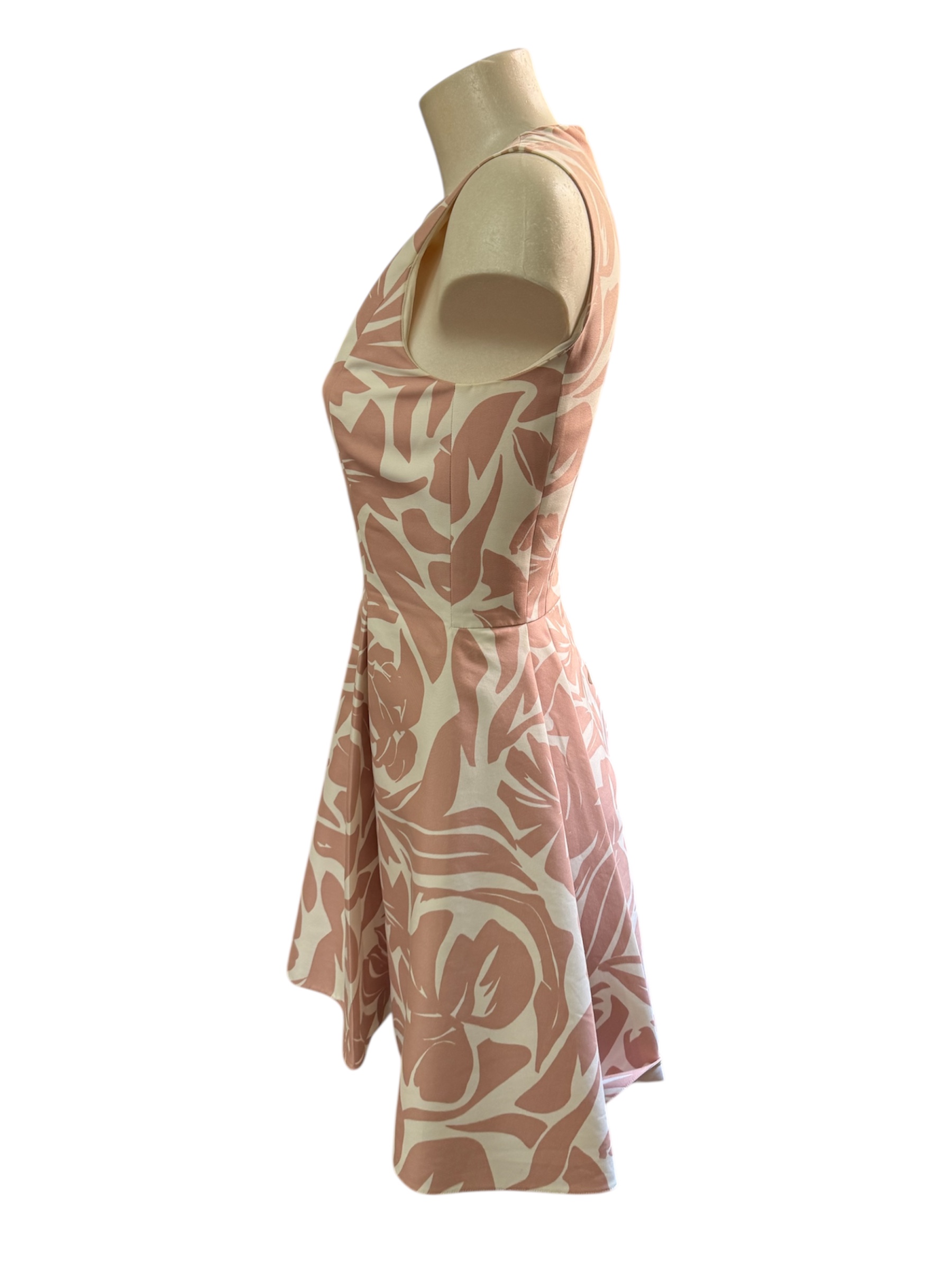La coupe cintrée met en valeur la taille, tandis que le buste ajusté structure la silhouette avec précision. L’encolure ronde et les emmanchures épurées soulignent la simplicité raffinée du modèle, laissant toute la place au travail du motif.