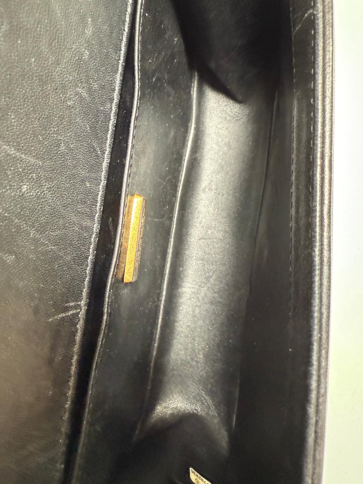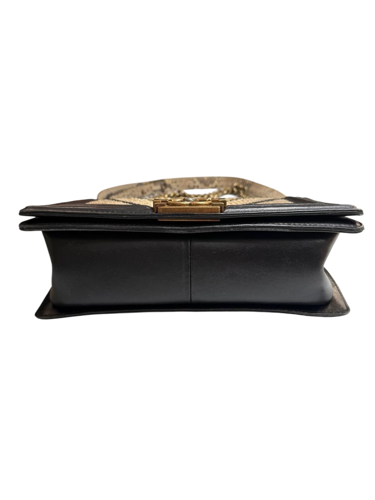 Une version rare et spectaculaire de l'iconique sac Boy Chanel. En bijouterie dorée, cette pièce de collection allie le luxe sauvage du python véritable à la sobriété du cuir noir. Avec son fermoir signature et sa chaîne, c'est un chef-d'œuvre de l'artisanat pour une allure rock et ultra-raffinée. Il sublime une tenue minimaliste en devenant le point focal de l'attention.