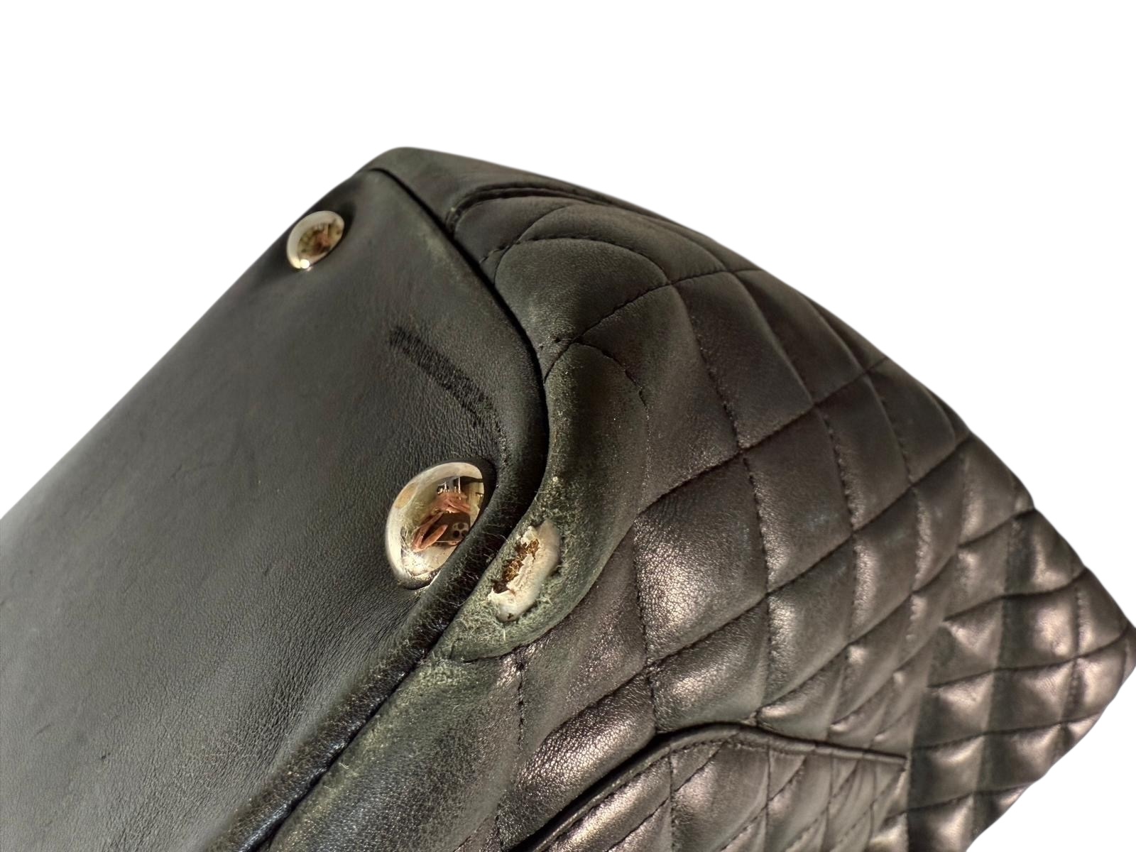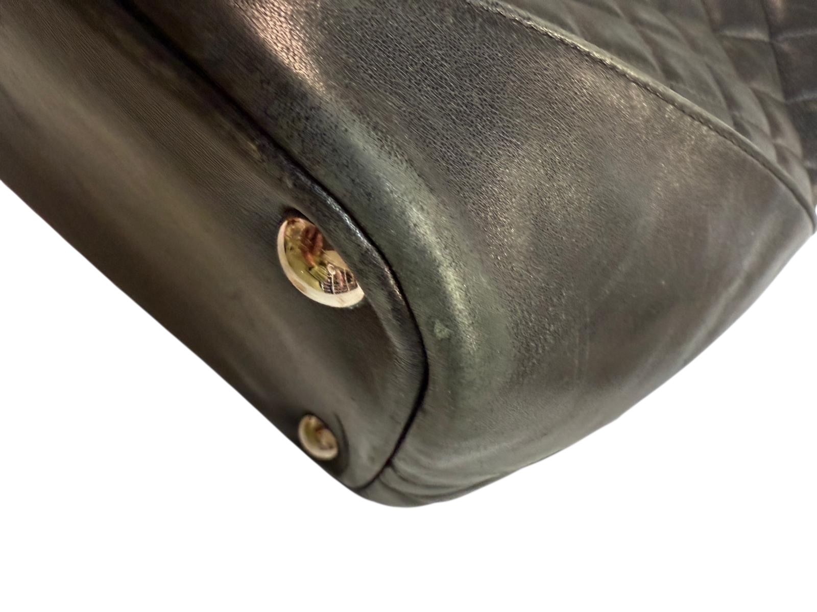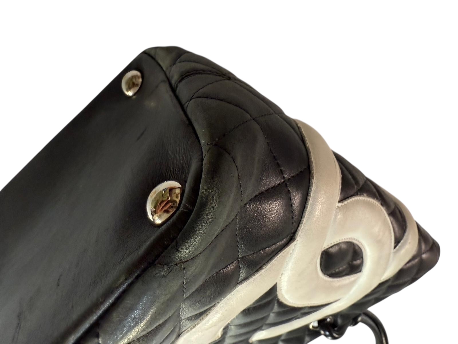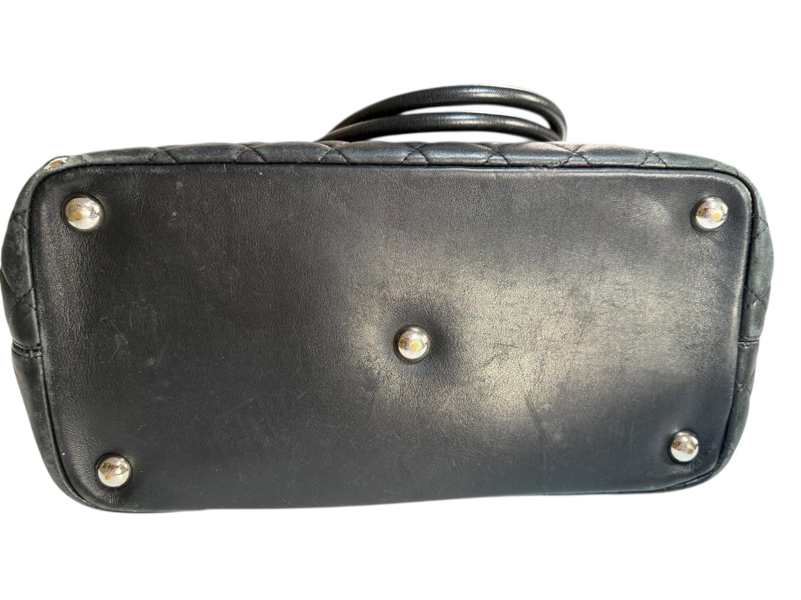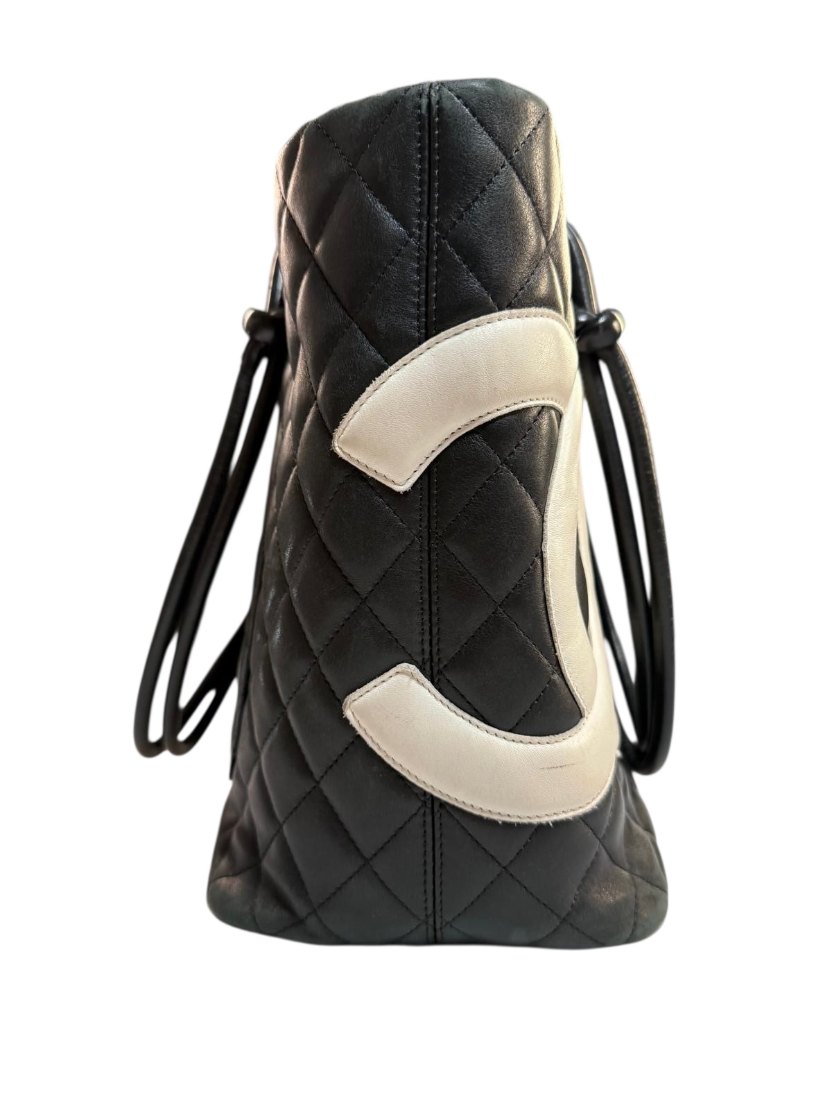 Affirmez votre style avec ce sac cabas Chanel, une pièce moderne et emblématique qui allie l'élégance intemporelle de la marque à un design audacieux. Ce sac est parfait pour un usage quotidien, offrant à la fois fonctionnalité et une touche de luxe reconnaissable. Confectionné dans un cuir noir de haute qualité avec le motif matelassé signature de Chanel, il se distingue par son grand logo "CC" entrelacé, oversize et de couleur blanc cassé sur le devant, créant un contraste saisissant. Ses deux poignées permettent un porté main ou épaule confortable. La silhouette rectangulaire et structurée en fait un sac spacieux, idéal pour transporter tous vos essentiels. Ce sac cabas est un choix parfait pour compléter une tenue décontractée ou pour apporter une touche de sophistication à un look plus habillé, faisant de lui une pièce maîtresse de votre collection de sacs.