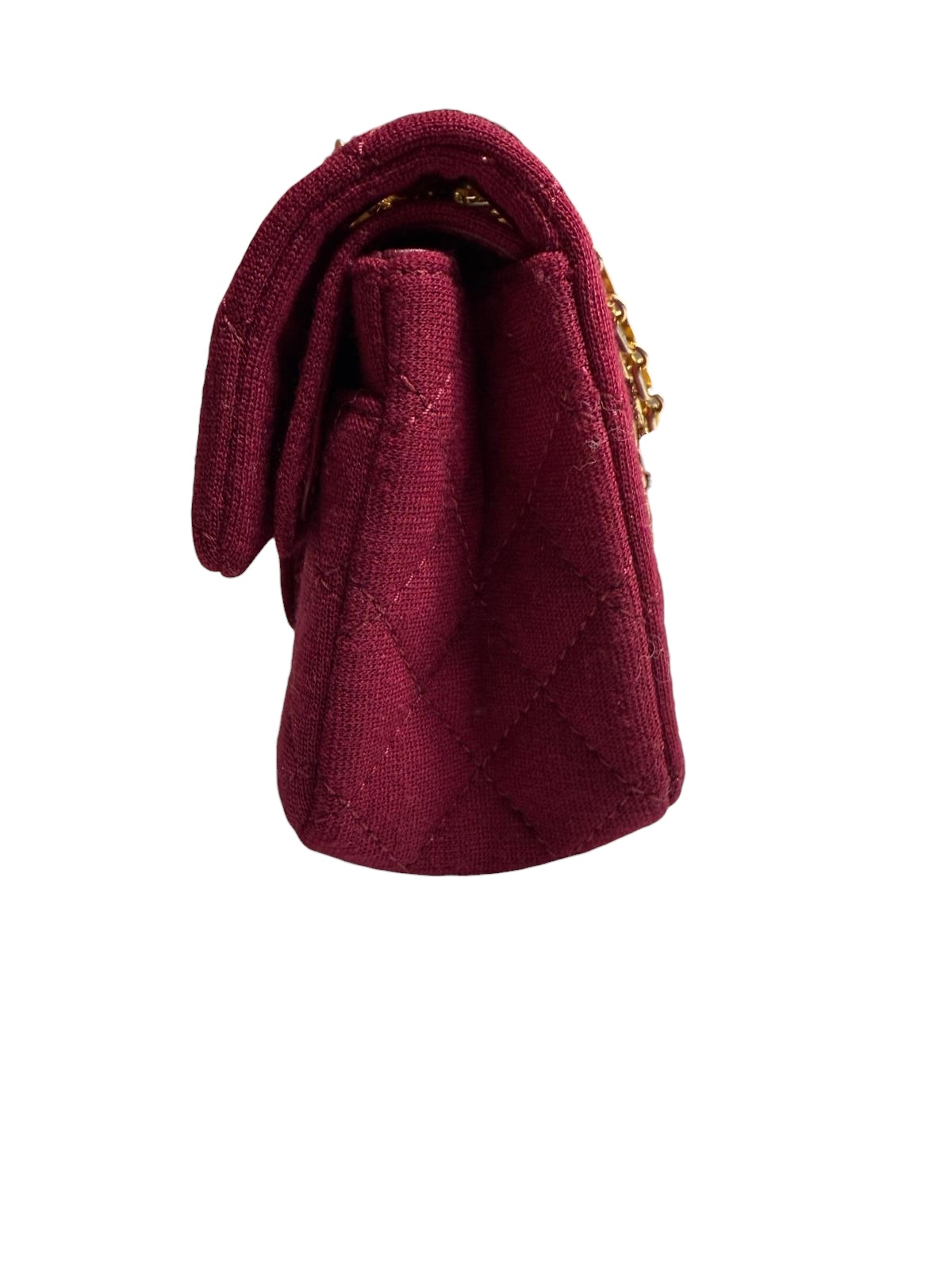 Ce sac Chanel 2.55 Mini bijouterie dorée est une interprétation vibrante et contemporaine du modèle historique créé par Gabrielle Chanel en février 1955. Décliné dans un format "Mini" très actuel, il est confectionné dans un jersey de laine d'un coloris fuchsia profond/framboise, offrant une texture douce et un fini mat élégant qui contraste avec le cuir classique.
