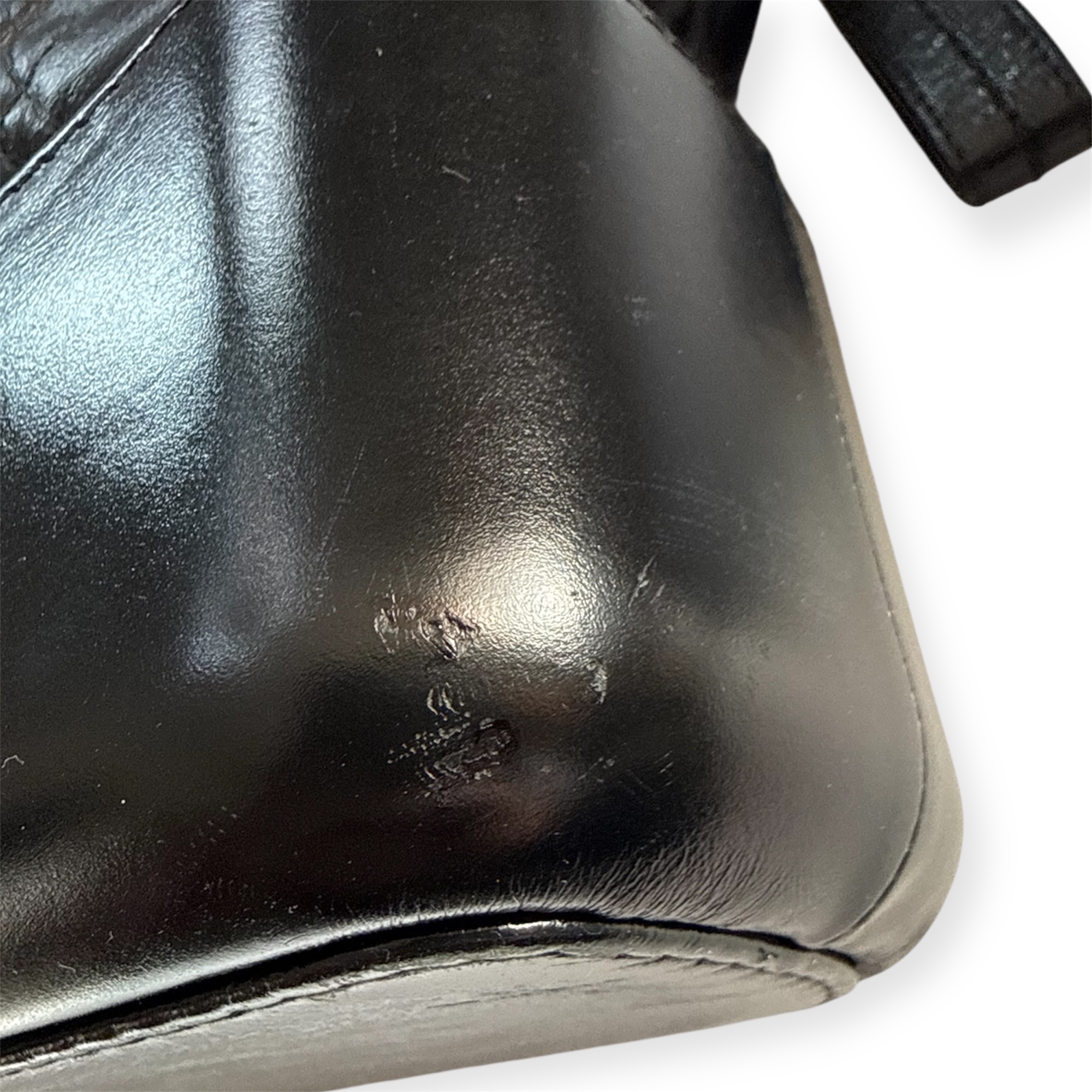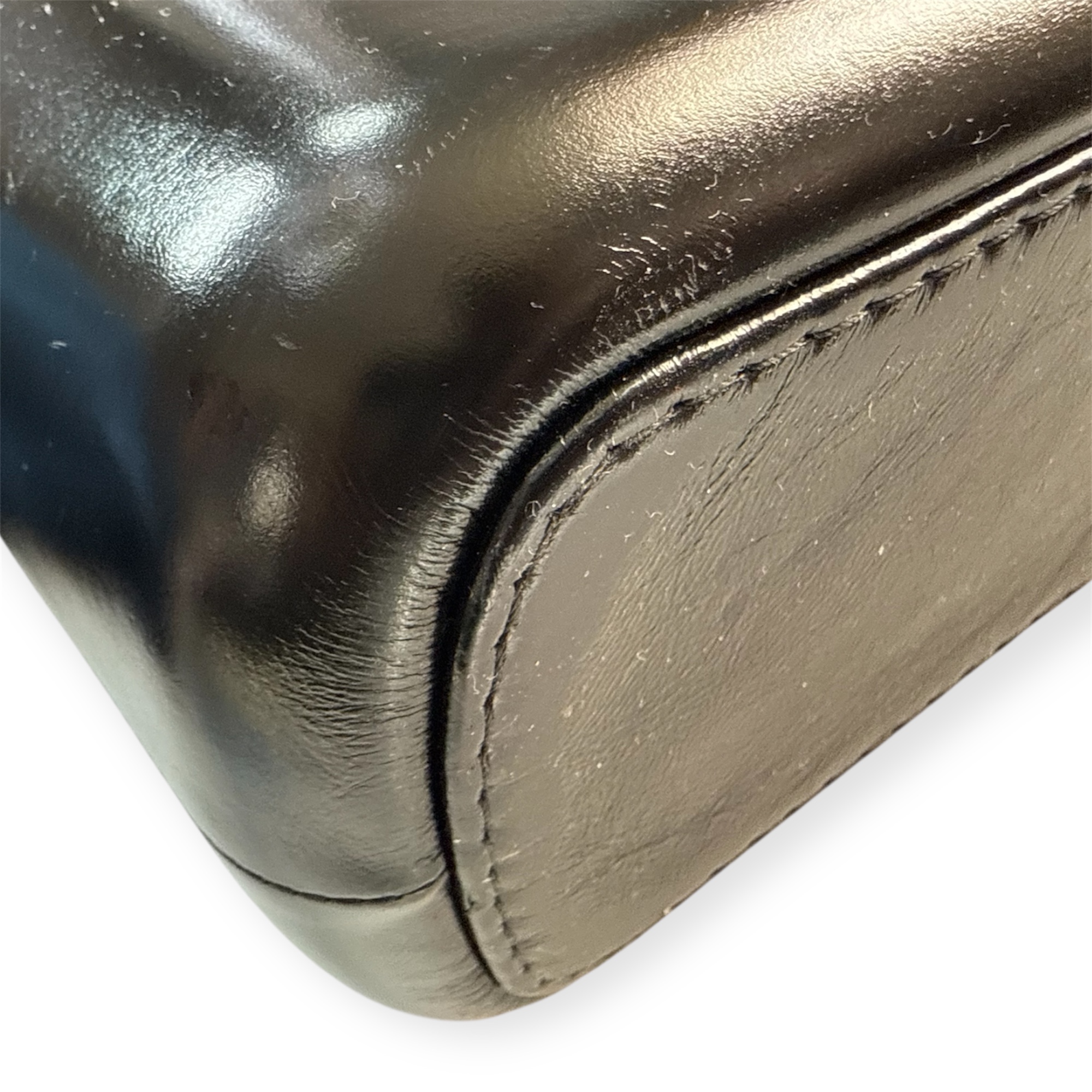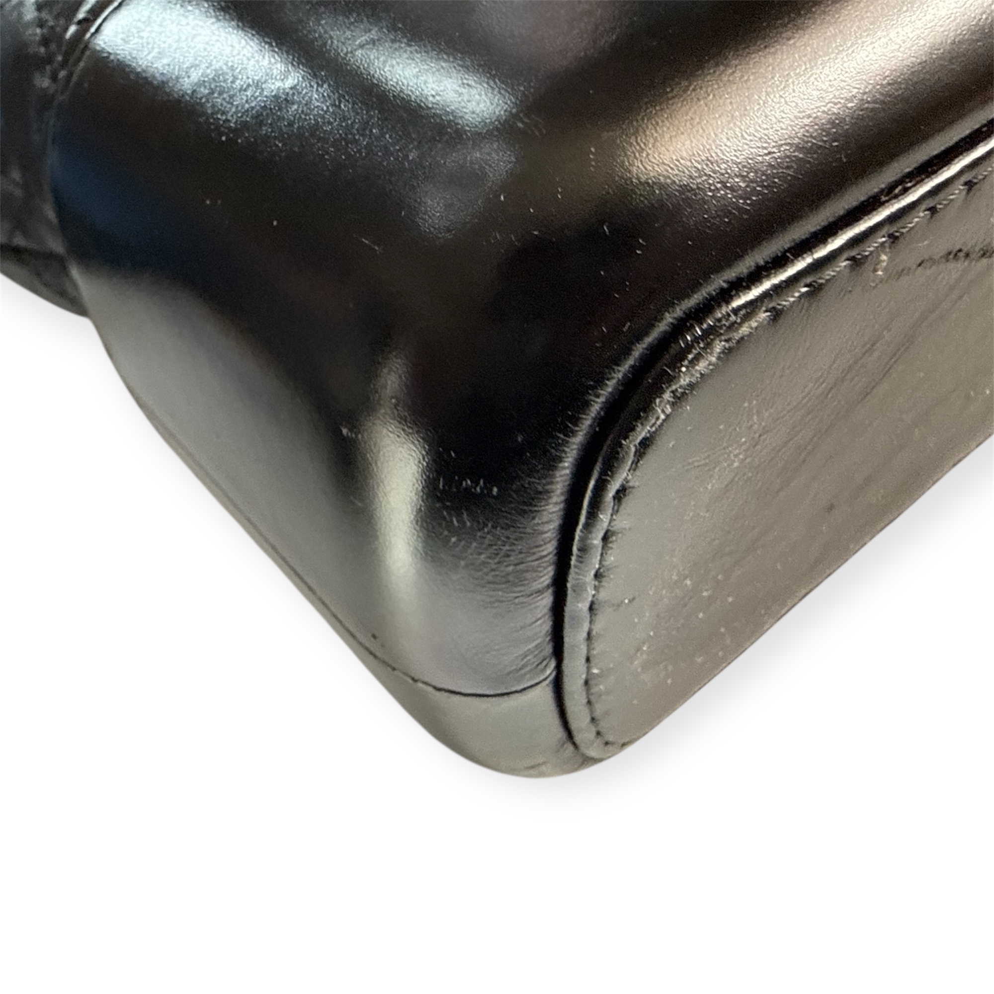 Confectionné en cuir noir, il présente le motif diamant signature de Chanel sur la partie supérieure, contrasté par une base en cuir lisse plus rigide. Cette construction hybride est l’une des signatures du modèle, mêlant souplesse et structure dans un équilibre unique.