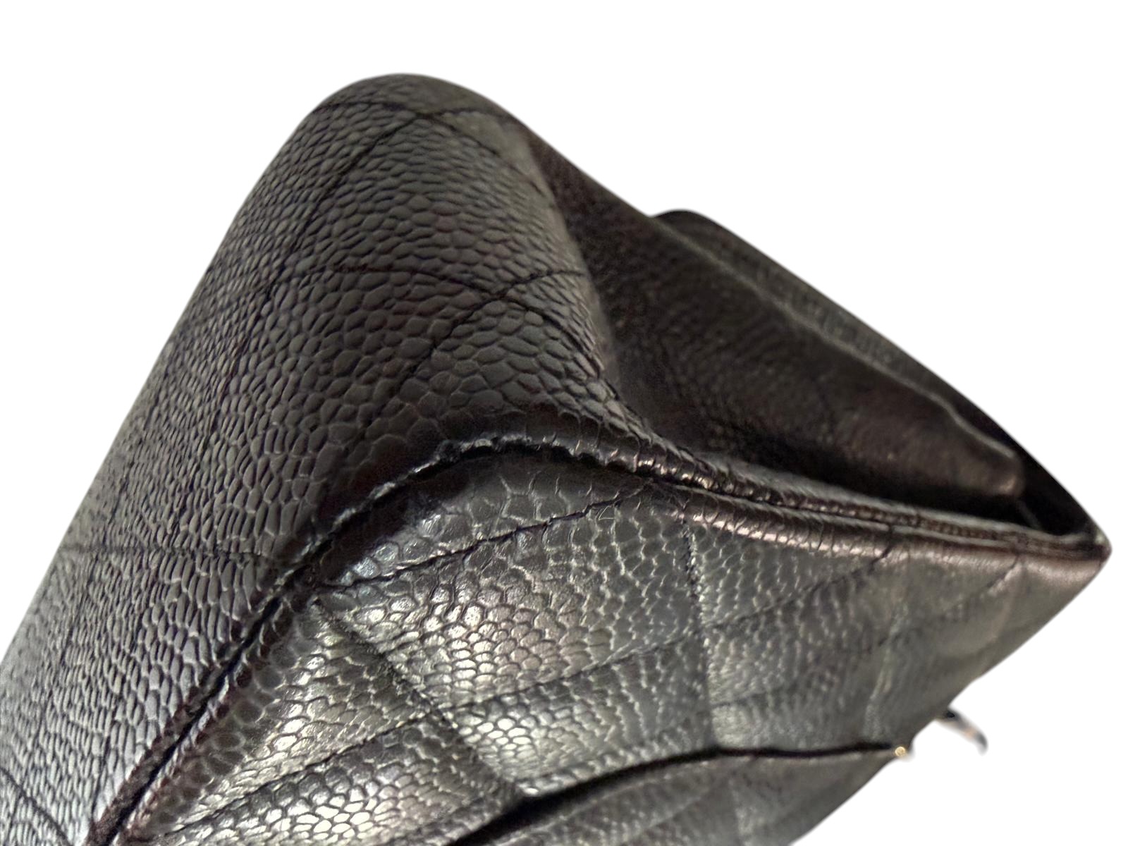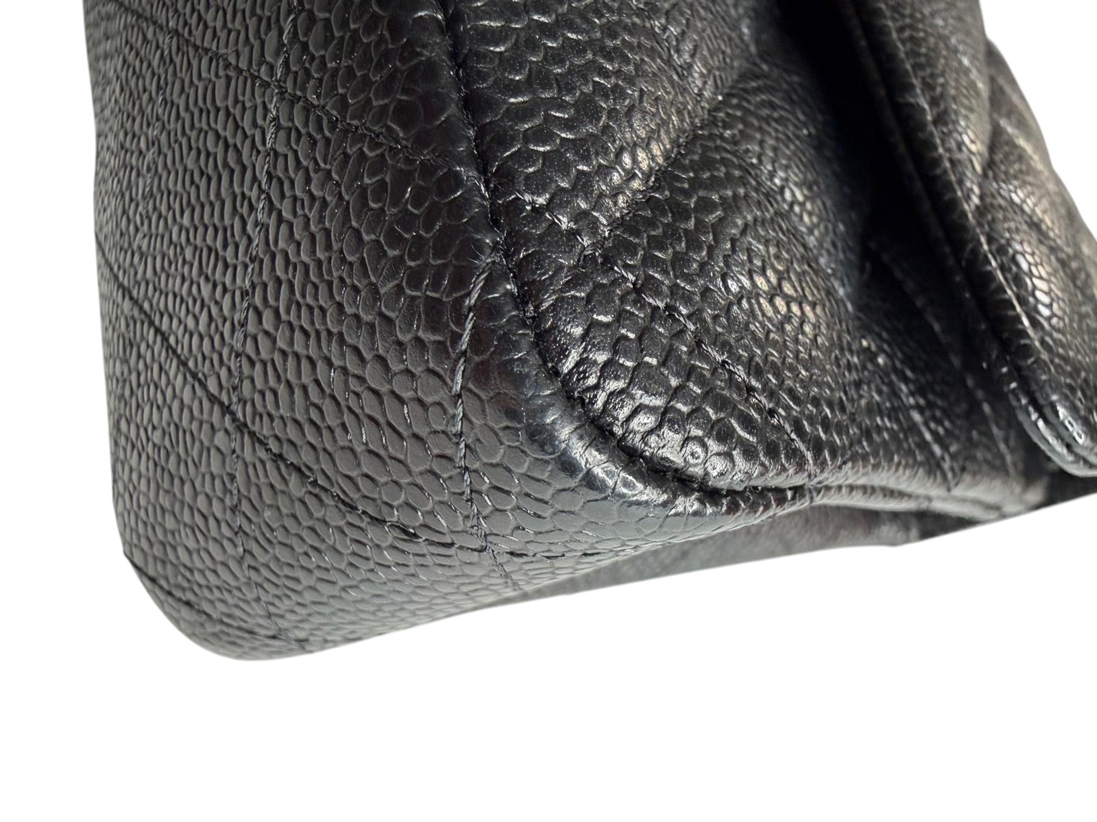 Ce sac Chanel incarne l’essence même de l’élégance intemporelle de la maison. Confectionné en cuir grainé noir, son design est structuré par le célèbre matelassage en losanges, signature historique de Chanel, associé au fermoir double C en métal doré qui vient signer la pièce avec discrétion et sophistication. La chaîne entrelacée de cuir permet un porté épaule ou croisé, alliant confort et élégance.
