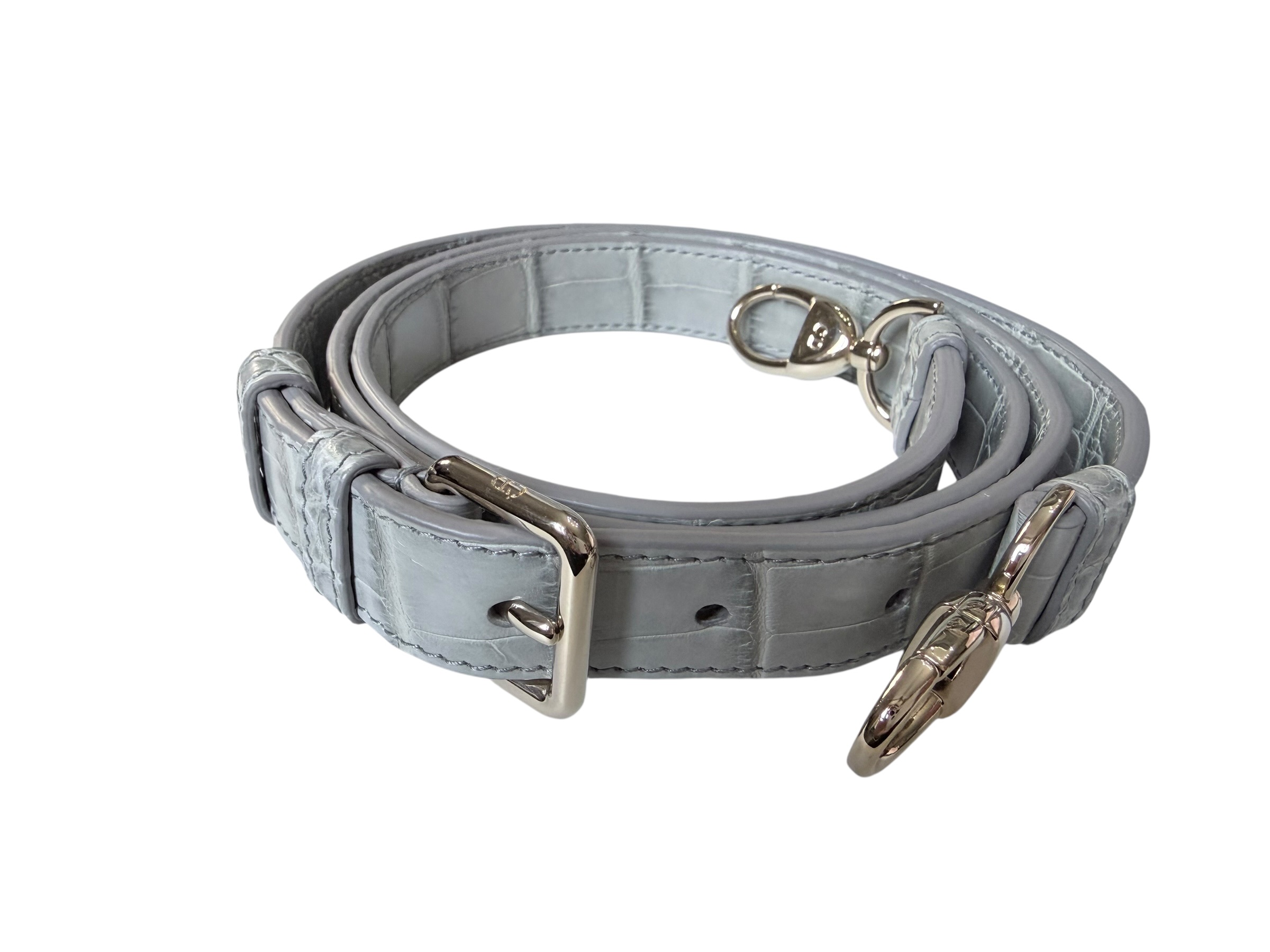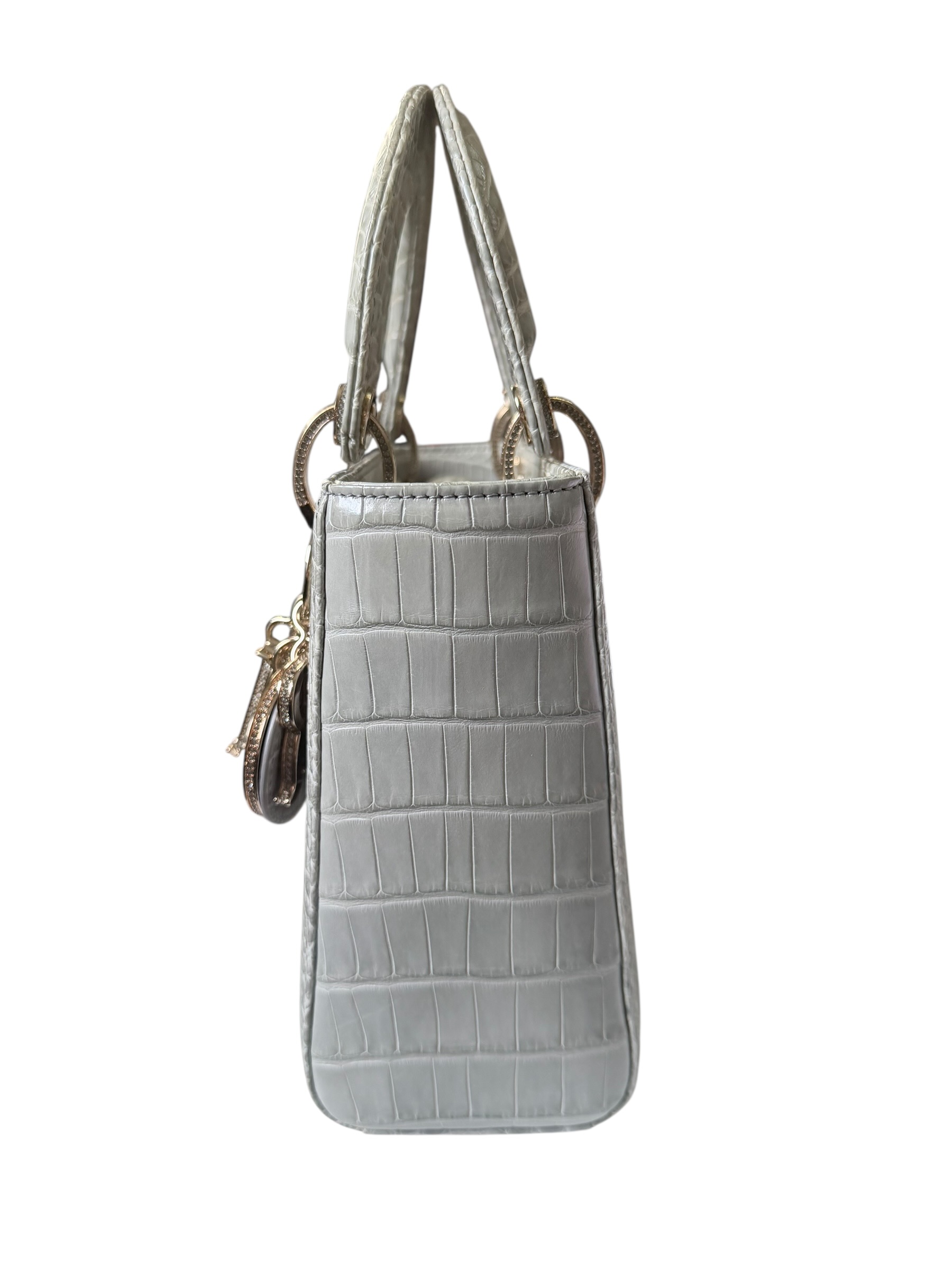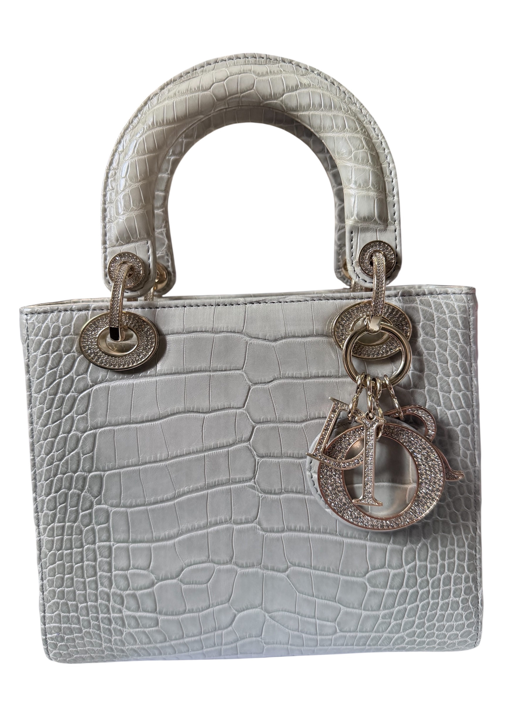 Ce sac Lady Dior est l'incarnation absolue de la Haute Maroquinerie de la Maison Dior, une pièce d'exception destinée aux collectionneurs les plus exigeants. Réalisé en véritable cuir de crocodile, sa finition mate de couleur gris clair sublime la texture exotique tout en conservant une élégance discrète et moderne.