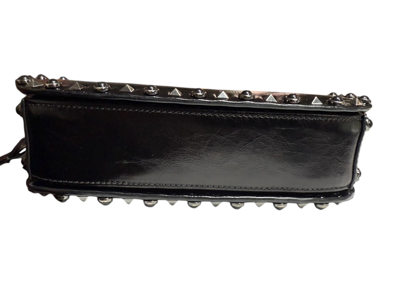 Ce sac Valentino Garavani, bijouterie métal ruthénium, est une pièce de caractère qui réinterprète les codes "Rockstud" de la Maison dans une esthétique vintage et urbaine. Confectionné en cuir noir à l'aspect craquelé, il offre une texture riche et résolument moderne.