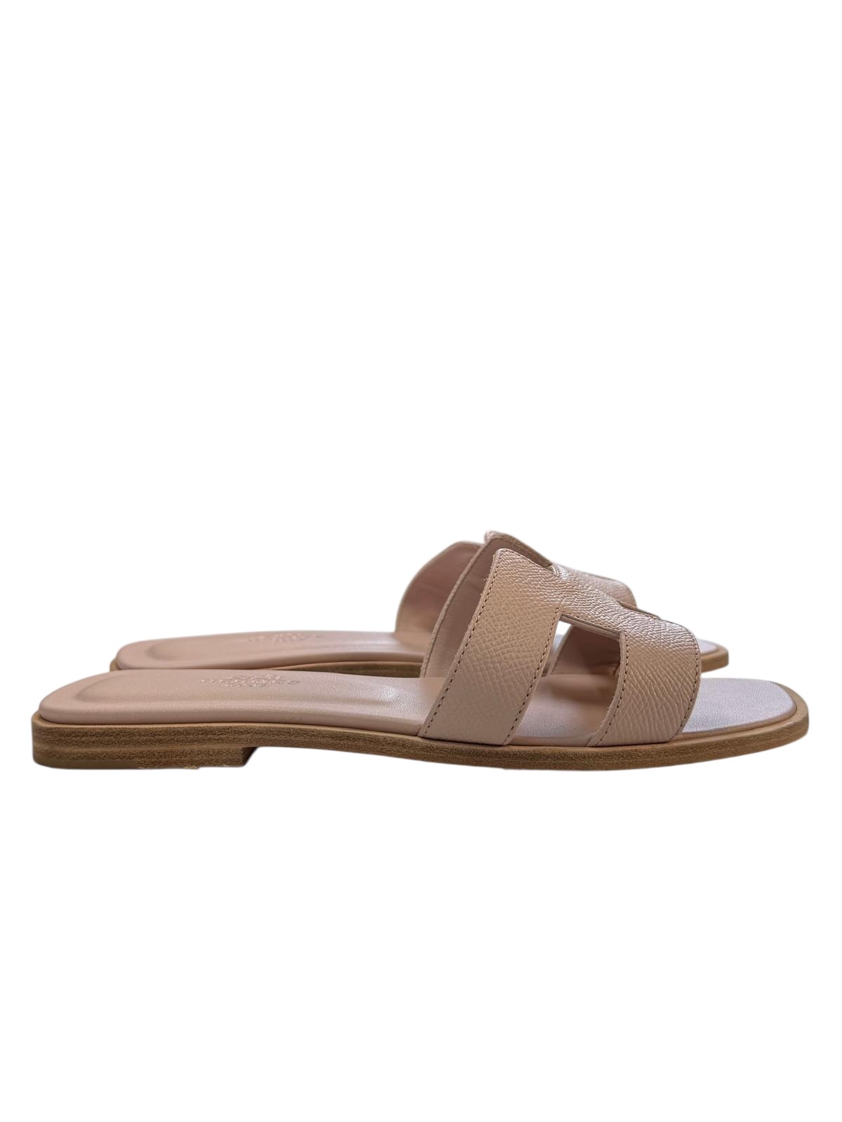 Les sandales Hermès Oran sont l'icône absolue de la Maison, un indispensable de toute garde-robe estivale qui traverse les décennies sans jamais perdre de son élégance. Ce modèle est reconnaissable entre mille grâce à sa découpe en cuir en forme de "H" majuscule, signature emblématique de la marque.